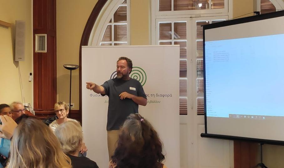 Εκτενή παρουσίαση σχετικά με την Κοινωνική Αλληλέγγυα Οικονομία, την Κοινωνική και Πράσινη καινοτομία, αλλά και το Φόρουμ Κοινωνικής Επιχειρηματικότητας, πραγματοποίησε ο κ. Νίκος Χρυσόγελος, εκπροσωπώντας την ΚοινΣΕπ “Άνεμος Ανανέωσης”.