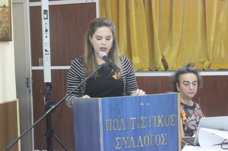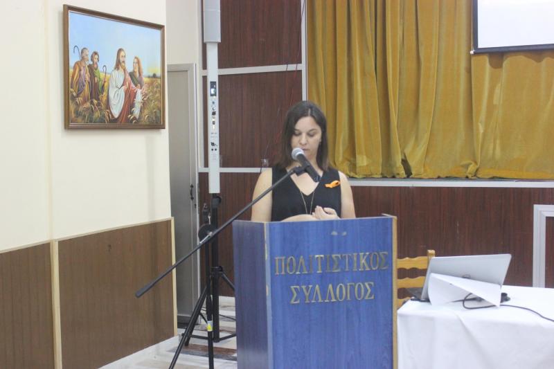 Ο κύκλος των ομιλιών άνοιξε με την κ. Μάγδα Διαμαντή, Σύμβουλο υποδοχής στο Συμβουλευτικό Κέντρο Σύρου, το οποίο εντάσσεται στις υποστηρικτικές δομές του Δικτύου για την πρόληψη και την αντιμετώπιση της βίας κατά των γυναικών της Γενικής Γραμματείας Οικογενειακής Πολιτικής και Ισότητας των Φύλων και συγχρηματοδοτείται από την Ελλάδα και την Ευρωπαϊκή Ένωση στο πλαίσιο του ΠΕΠ Νοτίου Αιγαίου 2014-2020.