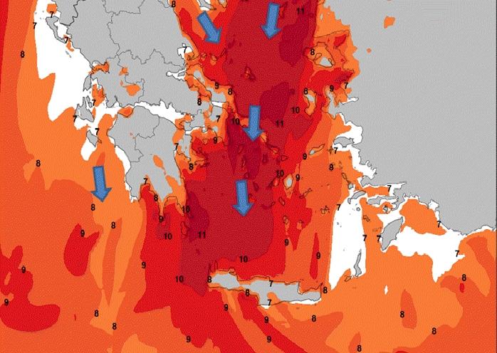 ανατολικά 4 με 6 και στο Αιγαίο 7 με 8 μποφόρ με σταδιακή εξασθένηση.