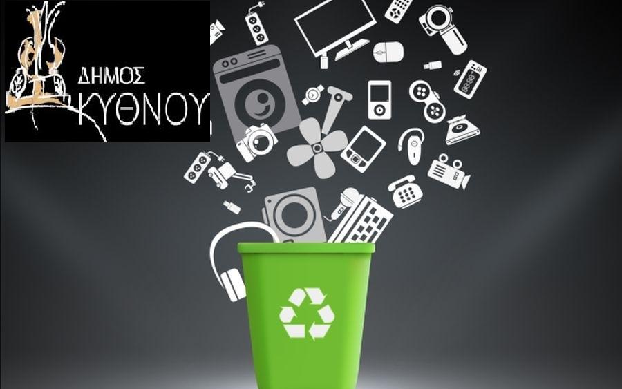 Ο Δήμος Κύθνου έχει συνάψει σύμβαση συνεργασίας με την «Ανακύκλωση Συσκευών ΑΕ», που είναι Συλλογικό Σύστημα Εναλλακτικής Διαχείρισης Αποβλήτων Ηλεκτρικού – Ηλεκτρονικού Εξοπλισμού (ΑΗΗΕ) .