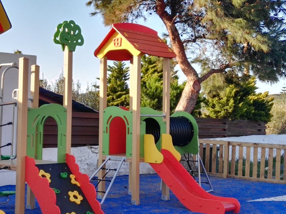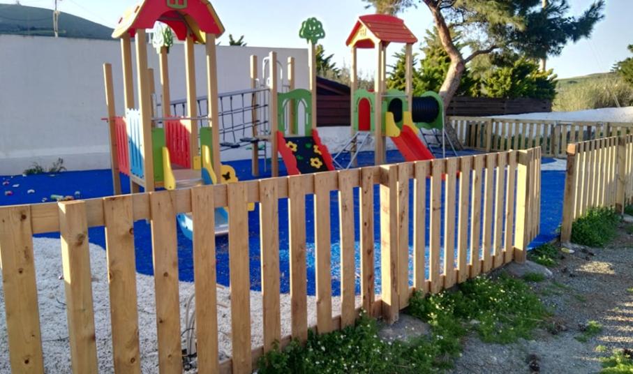 Ειδικότερα, στον συγκεκριμένο χώρο τοποθετήθηκε κατάλληλος εξοπλισμός για να περιφραχτεί το τμήμα της αυλής που αξιοποιήθηκε, εντός της οποίας εγκαταστάθηκαν νέα παιχνίδια, όπως κούνιες, τσουλήθρες, τραμπάλες και σπιτάκια. Αξίζει να τονισθεί ακόμη, πως, διαμορφώθηκε κατάλληλα και σύμφωνα με τις ισχύουσες προδιαγραφές, το δάπεδο, προκειμένου τα μικρά παιδιά να μην διατρέχουν κίνδυνο ατυχήματος σε κάποια πτώση τους.