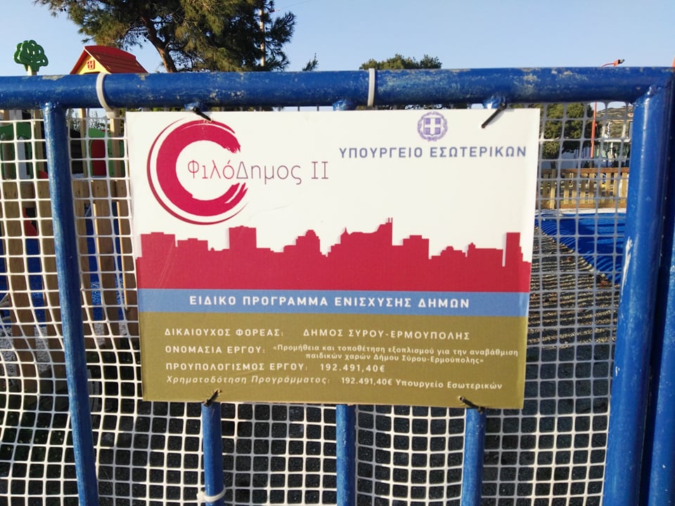Πρόκειται για μία νέα παιδική χαρά που κατασκευάστηκε στο πλαίσιο της αξιοποίησης - από πλευράς Δήμου Σύρου – Ερμούπολης – διαθέσιμης χρηματοδότησης από το πρόγραμμα ΦΙΛΟΔΗΜΟΣ ΙΙ.