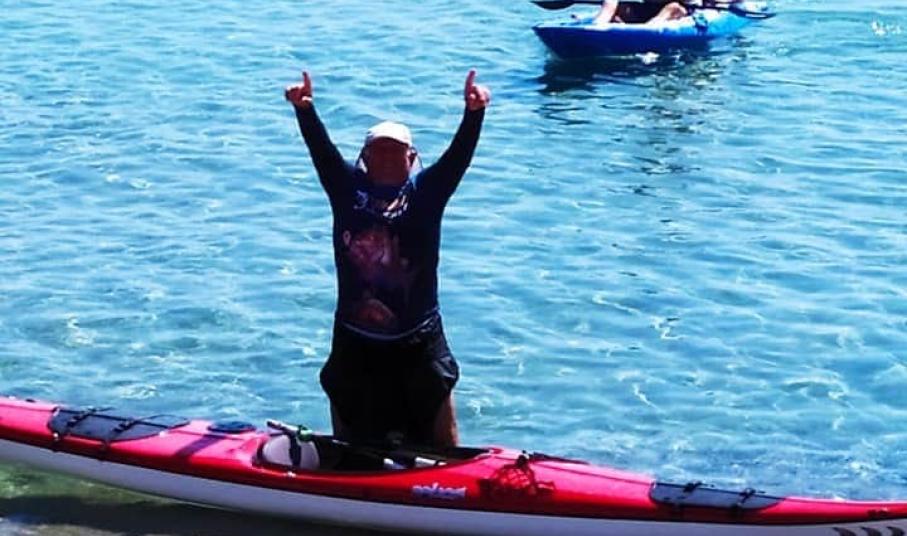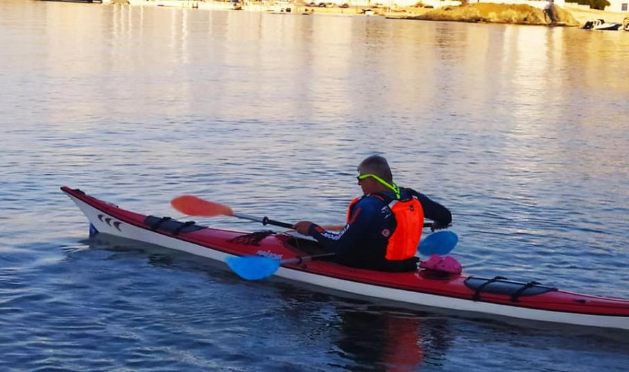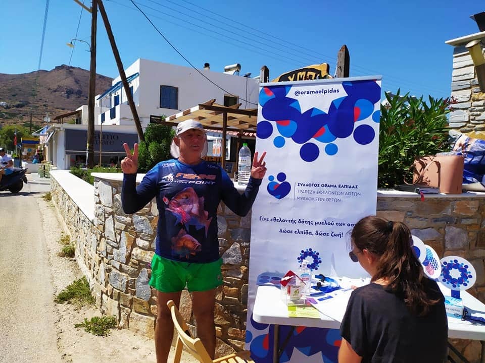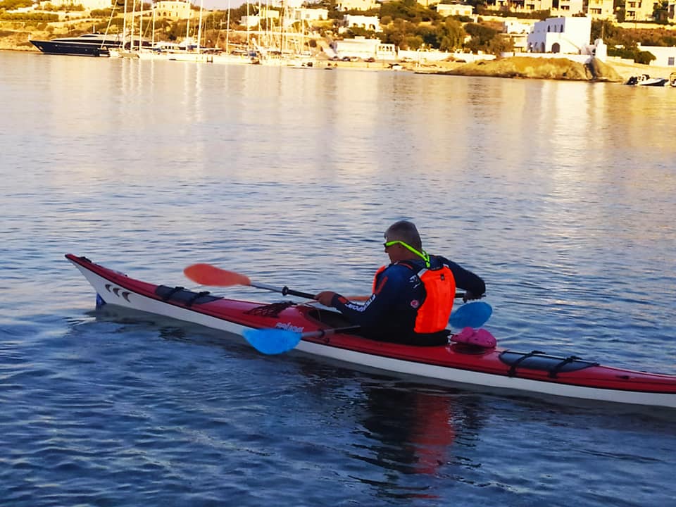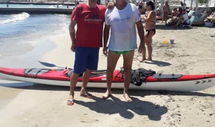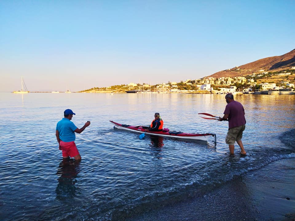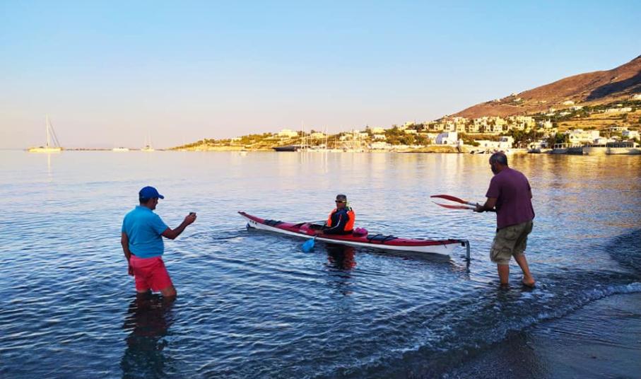 Υπό την ομπρέλα της εθελοντικής δράσης «Η Σύρος αγκαλιάζει το όραμα», ο κ. Αλυματήρης διένυσε με το καγιάκ του 29 περίπου μίλια, κάνοντας το θαλάσσιο γύρο της Σύρου με σημείο εκκίνησης και τερματισμού την παραλία του Φοίνικα.