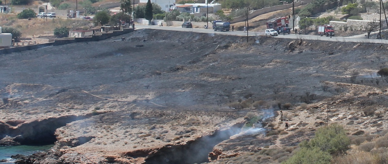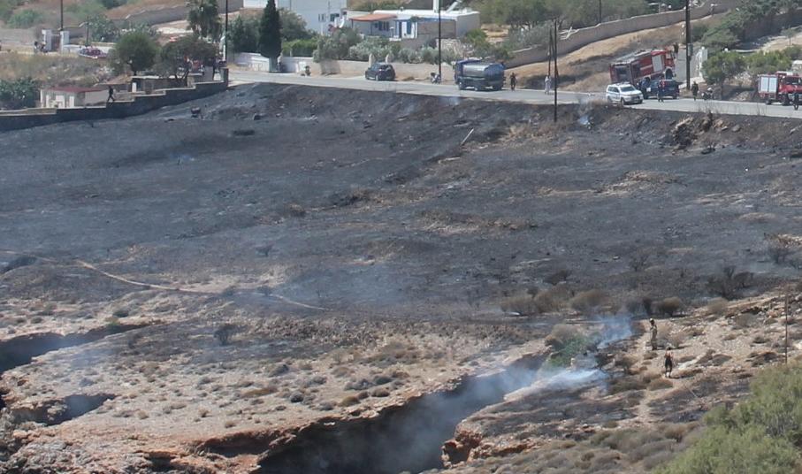 Οι φλόγες κατέκαψαν οικοπεδικές εκτάσεις ενώ ευτυχώς δεν προκλήθηκαν ζημιές σε κατοικίες.