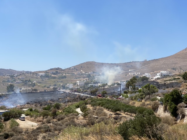 Ήδη έχει σπεύσει στην περιοχή δύναμη της Πυροσβεστικής Υπηρεσίας προκειμένου να τη θέσει υπό έλεγχο, ενώ επιπλέον ο Δήμος Σύρου - Ερμούπολης έχει συνδράμει με υδροφόρο όχημα.