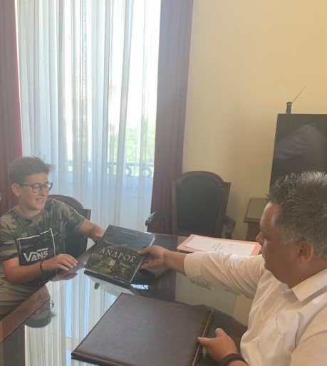 Τα συγχαρητήρια για την πρωτιά σε Παγκόσμιο Διαγωνισμό Ποίησης έδωσε ο Δήμαρχος Άνδρου, Δημήτρης Λοτσάρης, στον ανδριώτη στην καταγωγή Δημοσθένη-Δημήτρη Δεσποτίδη. Ο Δήμαρχος υποδέχθηκε τον 13χρονο και την μητέρα του, κα Βαρθολομαίου, σήμερα το μεσημέρι στο Δημαρχιακό Μέγαρο (Χώρα), παρουσία και του Αντιδημάρχου Πολιτισμού, Δημήτρη Γιαννίση.