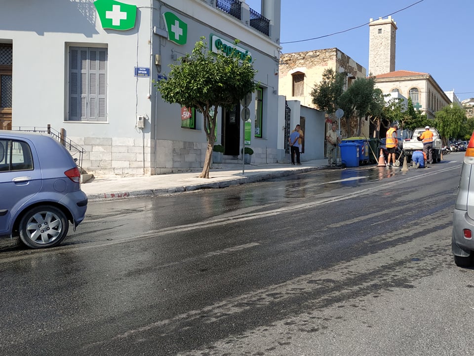 Διαρροή σε σωλήνα της ΔΕΥΑ Σύρου πλησίον της Πλατείας Ηρώων
