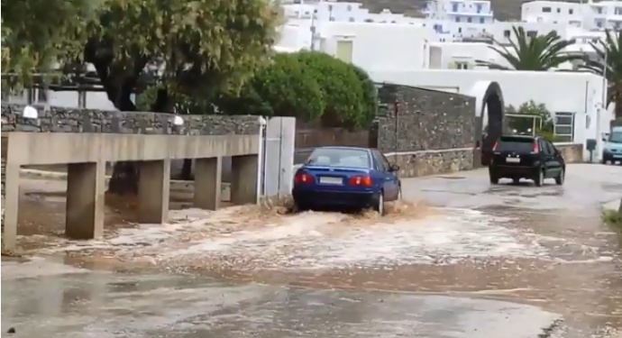 Δύο δυνατές βροχοπτώσεις εκδηλώθηκαν στο νησί της Πάρου, τα ξημερώματα του Σαββάτου. Οι μικρής διάρκειας νεροποντές που συνοδεύονταν από ισχυρούς ανέμους είχαν ως αποτέλεσμα να σχηματιστούν τρεχούμενα νερά στους μεγαλύτερους οικισμούς του νησιού.