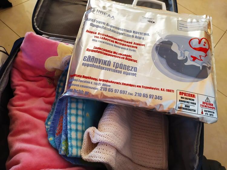 Πριν από λίγες ημέρες πραγματοποιήθηκε η πρώτη αποστολή αίματος από τον ομφάλιο λώρο νεογέννητου στην Πανελλήνια Τράπεζα ομφαλοπλακουντιακού αίματος (βλαστοκυττάρων) της Ακαδημίας Αθηνών. Το αίμα τοποθετήθηκε στην ειδική συσκευασία συλλογής (ΚΙΤ) το οποίο παρέλαβαν οι συμμετέχοντες στη δράση γονείς από την Κοινωνική Υπηρεσία.