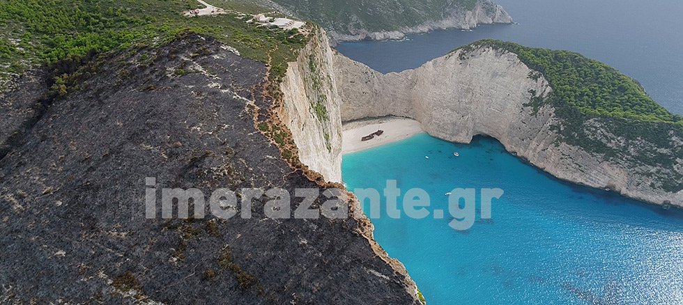 Κρανίου τόπος η περιοχή πάνω από το Ναυάγιο… Σύμφωνα με τις πρώτες εκτιμήσεις, η φωτιά που ξέσπασε το μεσημέρι της Κυριακής κοντά στη διασταύρωση της Μονής Αγίου Γεωργίου των Κρημνών είχε ως αποτέλεσμα να γίνουν στάχτη πάνω από 1.500 στρέμματα. Οι πυροσβέστες κατέβαλαν υπεράνθρωπες προσπάθειες και τελικά κατάφεραν να οριοθετήσουν τη φωτιά το πρωί της Δευτέρας, ενώ ρίψεις νερού πραγματοποίησαν με το πρώτο φως της ημέρας δυο ελικόπτερα, δυο πετζετέλ και ένα καναντέρ. Δυστυχώς, όλο το βράδυ συνέχισε το καταστροφικό της έργο, με αποτέλεσμα εκατοντάδες στρέμματα να γίνουν στάχτη.