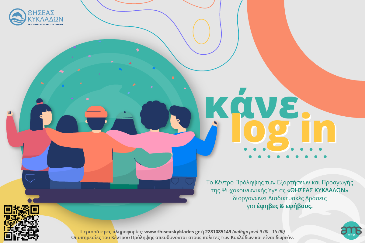 Στο πλαίσιο των ιδιαίτερων συνθηκών που διαμορφώθηκαν την τρέχουσα σχολική χρονιά, λόγω της πανδημίας του κορωνοϊού, το Κέντρο Πρόληψης «Θησέας Κυκλάδων» συναντά τους εφήβους, τους νέους ενήλικες, τους γονείς και τους εκπαιδευτικούς των Κυκλάδων διαδικτυακά.