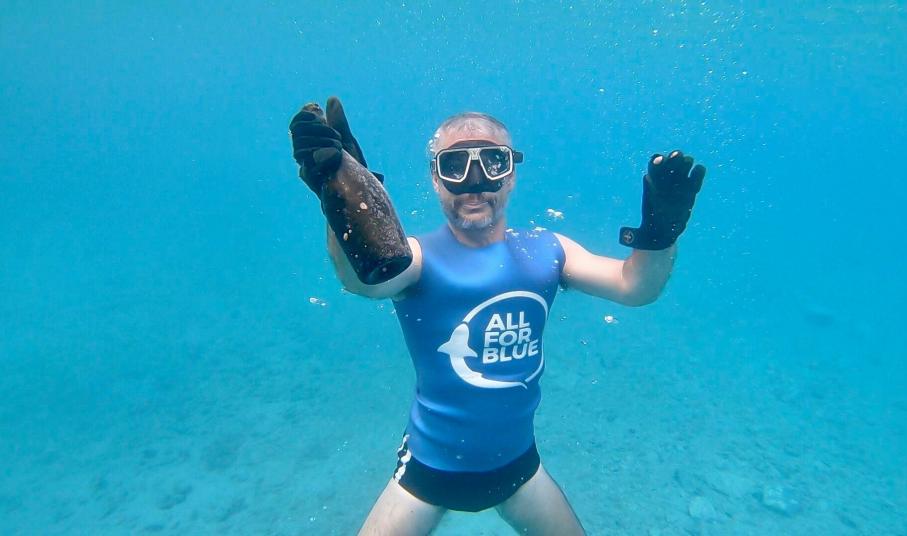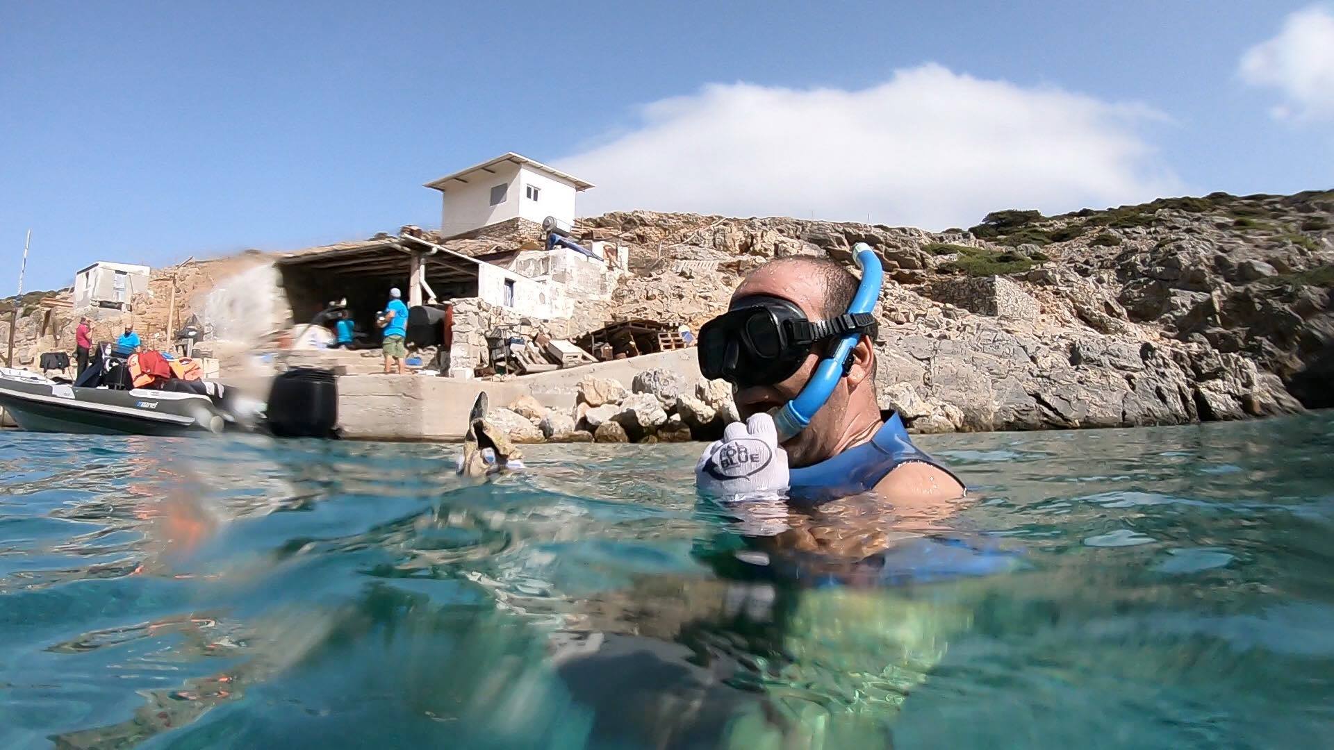 Στο πλαίσιο της αποστολής τους, οι δύτες της All For Bue προχώρησαν επίσης σε καθαρισμό της ακτής και του βυθού, ενώ την ίδια στιγμή συνεργείο από τη γερμανική τηλεόραση πραγματοποιούσε γυρίσματα με σκοπό τη δημιουργία ενός αφιερώματος στη μοναδική κάτοικο της νησίδας.