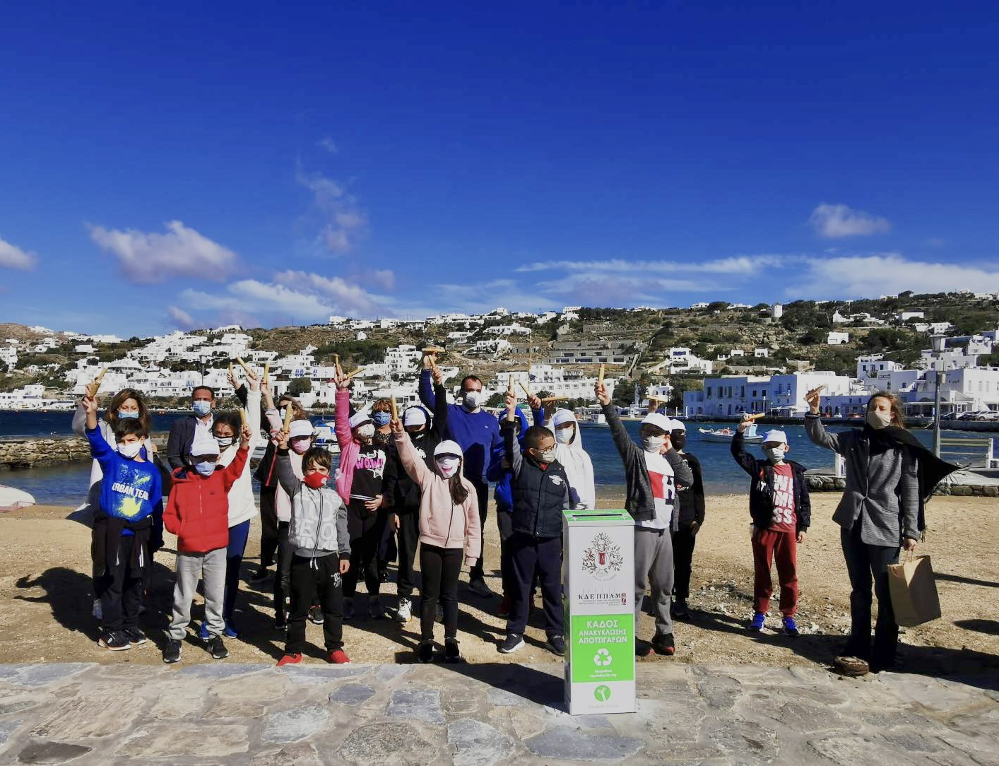 Στην προσπάθεια υιοθέτησης μιας νέας οικολογικής συνήθειας συμμετέχουν και τα παιδιά, στέλνοντας το μήνυμα πως η περιβαλλοντική παιδεία και ενσυνείδηση ξεκινά πολύ νωρίς. Τα παιδιά του 1ου Δημοτικού Σχολείου Μυκόνου με τη Διευθύντρια κ. Δήμητρα Αγγελοπούλου και την δασκάλα τους κρατώντας στα χέρια τους τα ατομικά ανακυκλώσιμα τσιγαροδοχεία της Cigaret Cycle φώναξαν #gopafree και υποσχέθηκαν να μεταφέρουν στους γονείς και τους συγγενείς τους το μήνυμα.