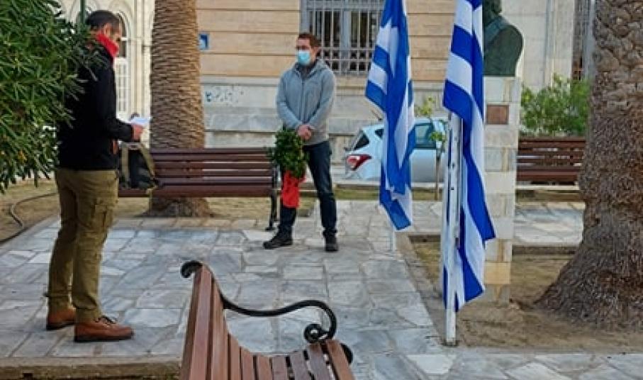 Τιμή στη γενιά του Πολυτεχνείου, σε όλους εκείνους που σε όλους εκείνους που «έπεσαν», φυλακίστηκαν και βασανίστηκαν για να υπερασπιστούν «το ψωμί, την παιδεία και την ελευθερία μας» απέδωσαν εκπρόσωποι φορέων της Σύρου, τηρώντας όλα τα απαραίτητα μέτρα Προστασίας.