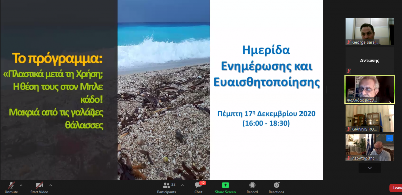 Η επιτακτική ανάγκη για μία συντονισμένη προσπάθεια αντιμετώπισης της θαλάσσιας ρύπανσης από μικροπλαστικά, που συγκαταλέγεται στις παγκόσμιες περιβαλλοντικές ανησυχίες του 21ου αιώνα με αρνητικές επιπτώσεις στην κοινωνία και την οικονομία υπογραμμίστηκε στο πλαίσιο της χθεσινής διαδικτυακής ημερίδας με θέμα: «Πλαστικά μετά τη Χρήση; Η θέση τους στον Μπλε κάδο! Μακριά από τις γαλάζιες θάλασσες».