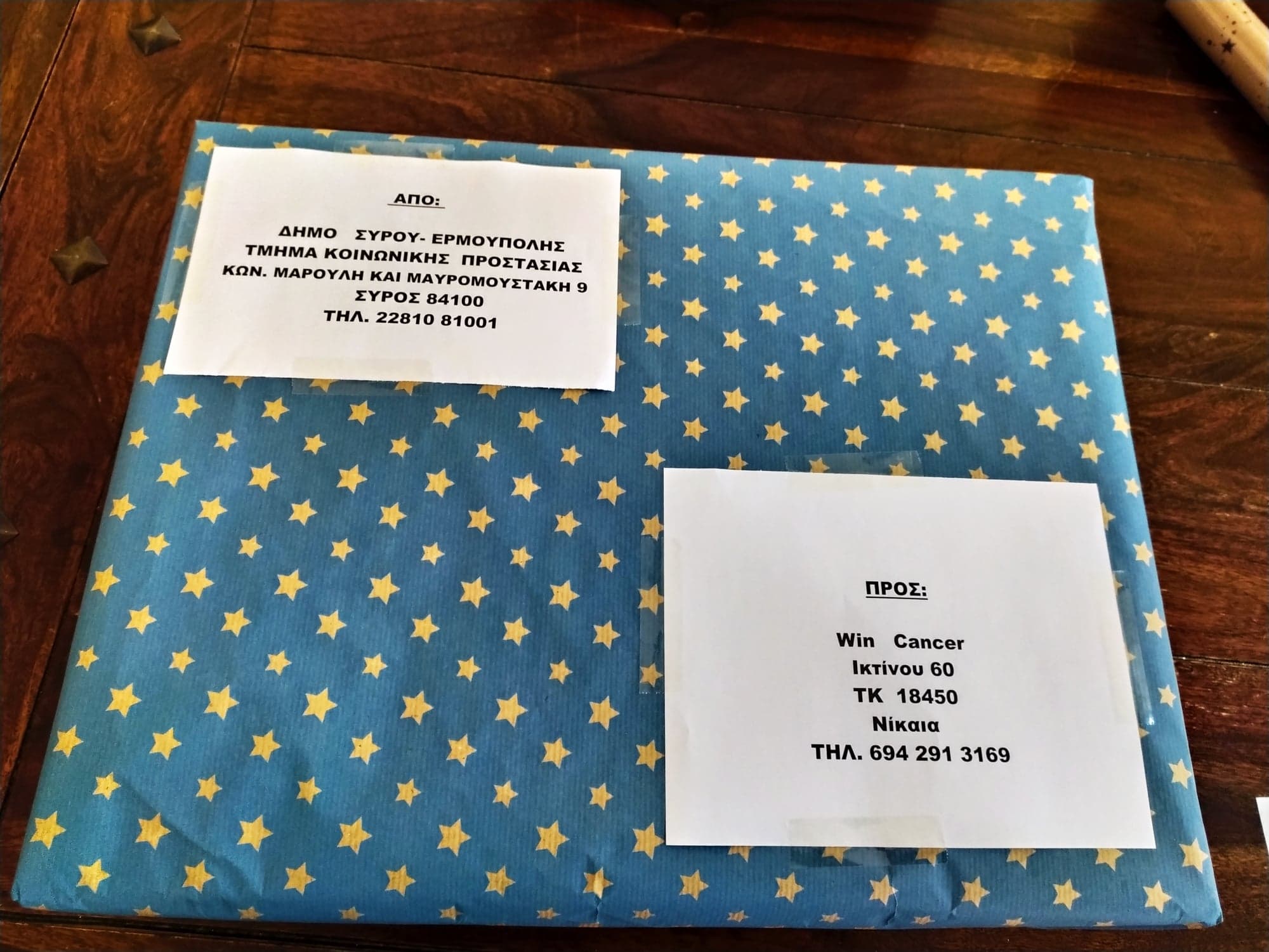 Ένας σάκος γεμάτος ευχές εστάλη από το νησί της Σύρου στην εθελοντική οργάνωση κοινωνικής αλληλεγγύης Win Cancer για να δώσει δύναμη και ελπίδα σε συνανθρώπους μας που έχουν ανάγκη από την αγάπη και τη θετική μας σκέψη.