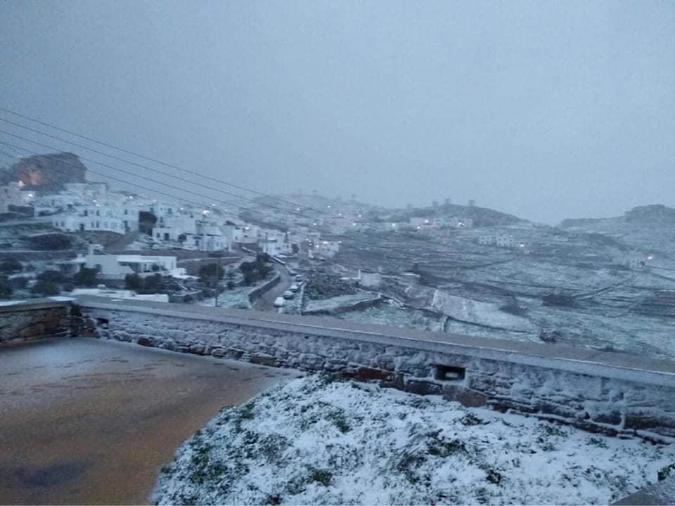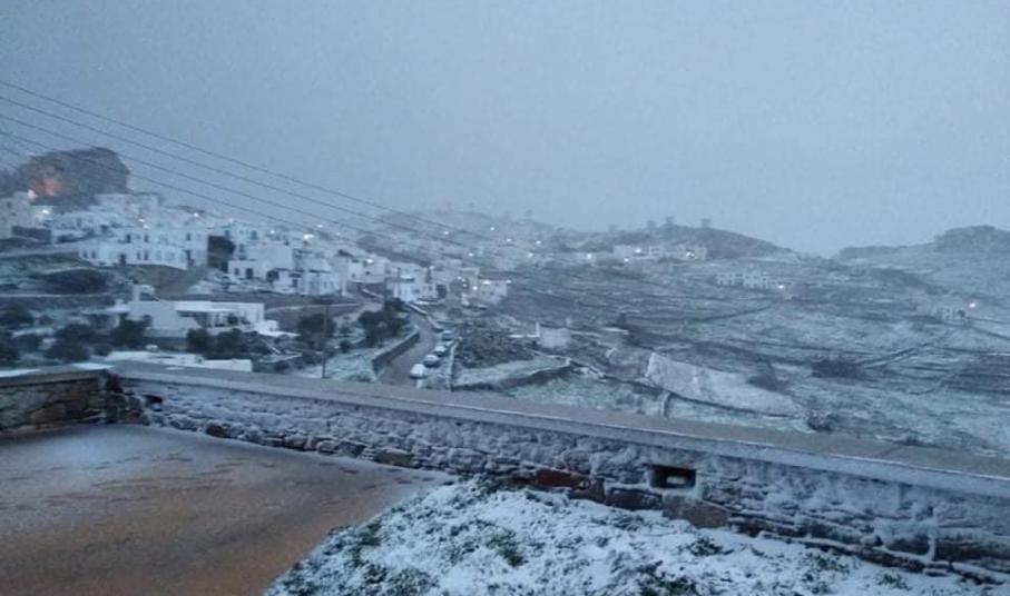 Ισχυρές χιονοπτώσεις “έντυσαν” στα λευκά αρκετά νησιά των Κυκλάδων, ενώ μικροπροβλήματα παρουσιάστηκαν στην ηλεκτροδότηση κάποιων περιοχών λόγω της κακοκαιρίας