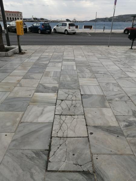 Αδιαμφισβήτητα, η Ερμούπολη συγκαταλέγεται στις πιο προσεγμένες και περιποιημένες πόλεις της χώρας, όπου καταβάλλονται συνεχείς προσπάθειες για να γίνει ακόμη πιο φιλική και ελκυστική για όλους. Ωστόσο, σπασμένες, ραγισμένες, ή βυθισμένες πλάκες σε πολυσύχναστα σημεία, όπως στα πεζοδρόμια κατά μήκος της παραλιακής οδού μέχρι και το λιμάνι αποτελούν φυσικές φθορές που παρατηρούνται σε κάθε πόλη και χρήζουν αποκατάστασης, προκειμένου να μην συσσωρευτούν και πληθύνουν, θαμπώνοντας έστω και σε ελάχιστο βαθμό αυτόν τον εντυπωσιακό «καθρέφτη».