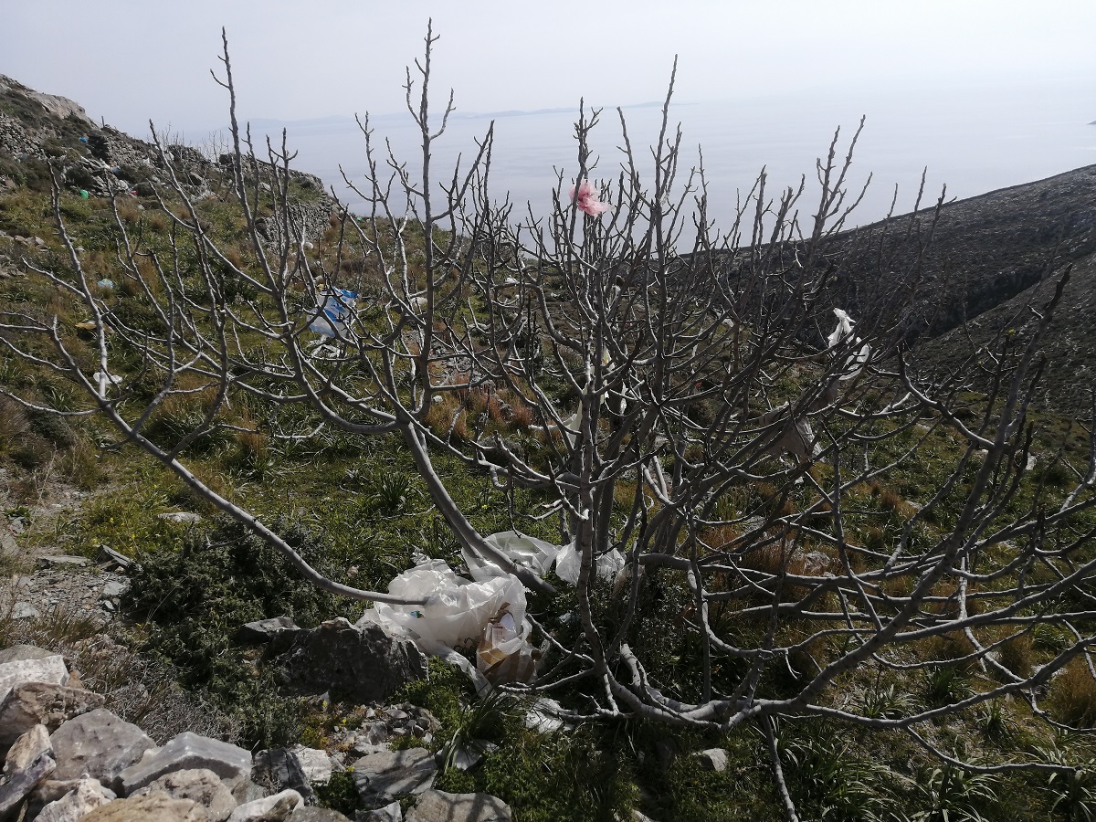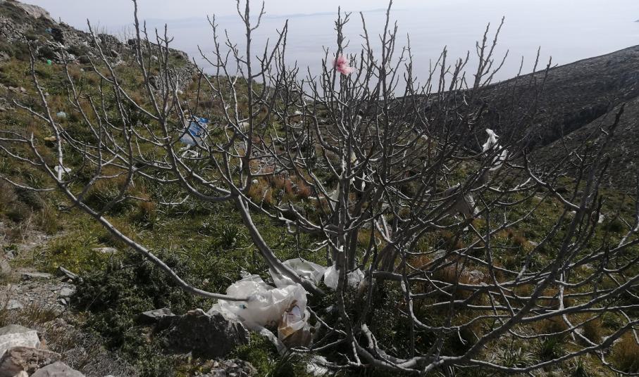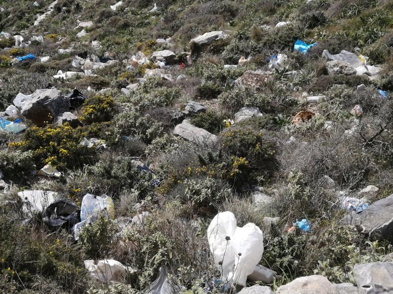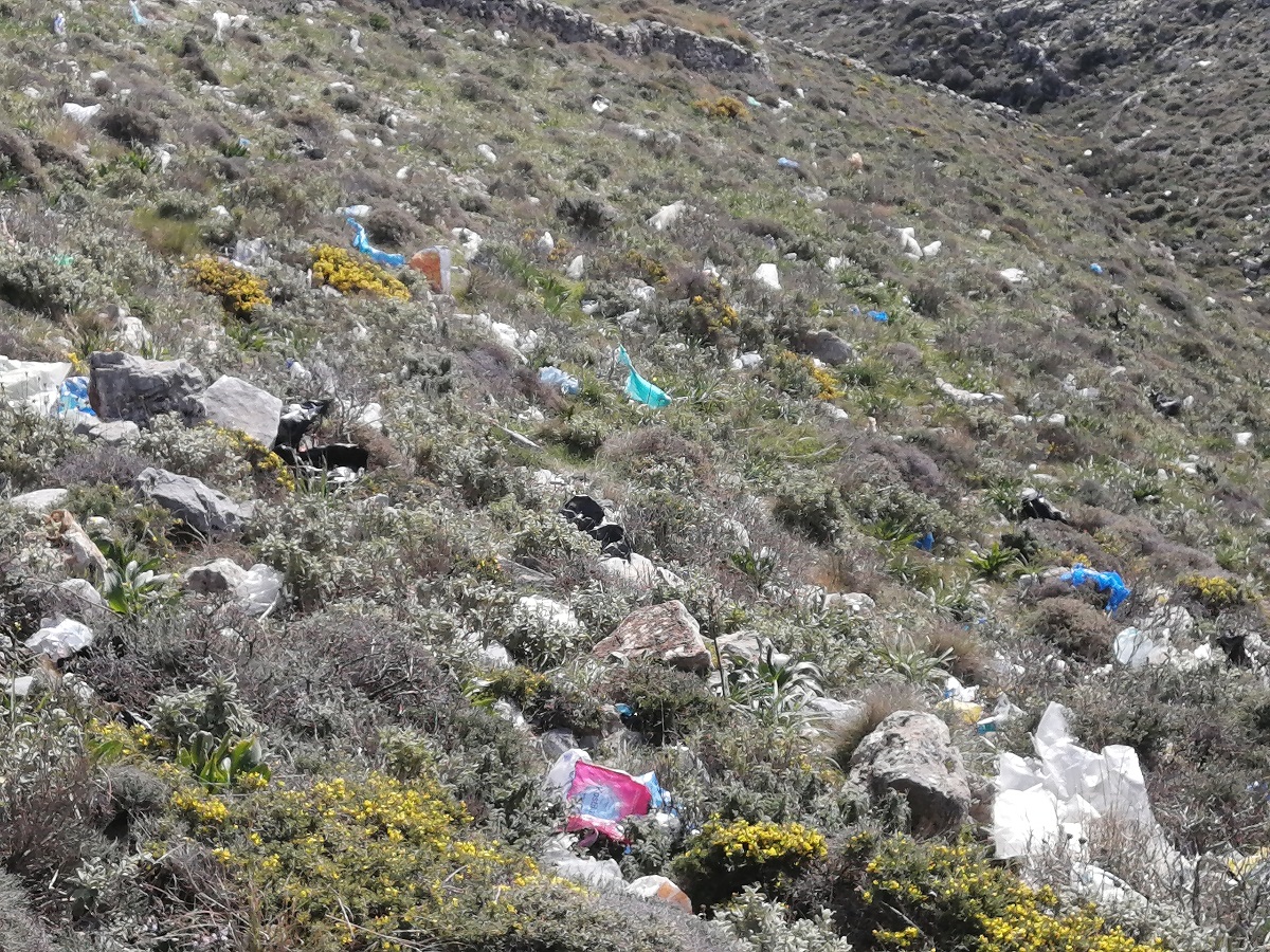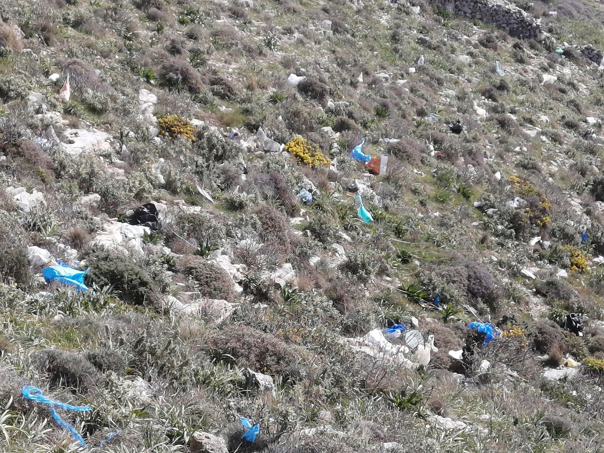 Οι δεκάδες πλαστικές σακούλες και τα λοιπά σκουπίδια που «ταξιδεύουν» με τον αέρα από τον ΧΥΤΑ του Δήμου Σύρου – Ερμούπολης και διασκορπίζονται στο Ρηχωπό της Απάνω Μεριάς είναι μία από τις πρώτες εικόνες που αντικρίζει κανείς, ακολουθώντας το μονοπάτι προς τη Σπηλιά του Φερεκύδη.