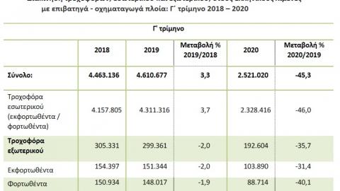 Διακίνηση επιβατών, εμπορευμάτων και τροχοφόρων στα λιμάνια το Γ΄ τρίμηνο 2020