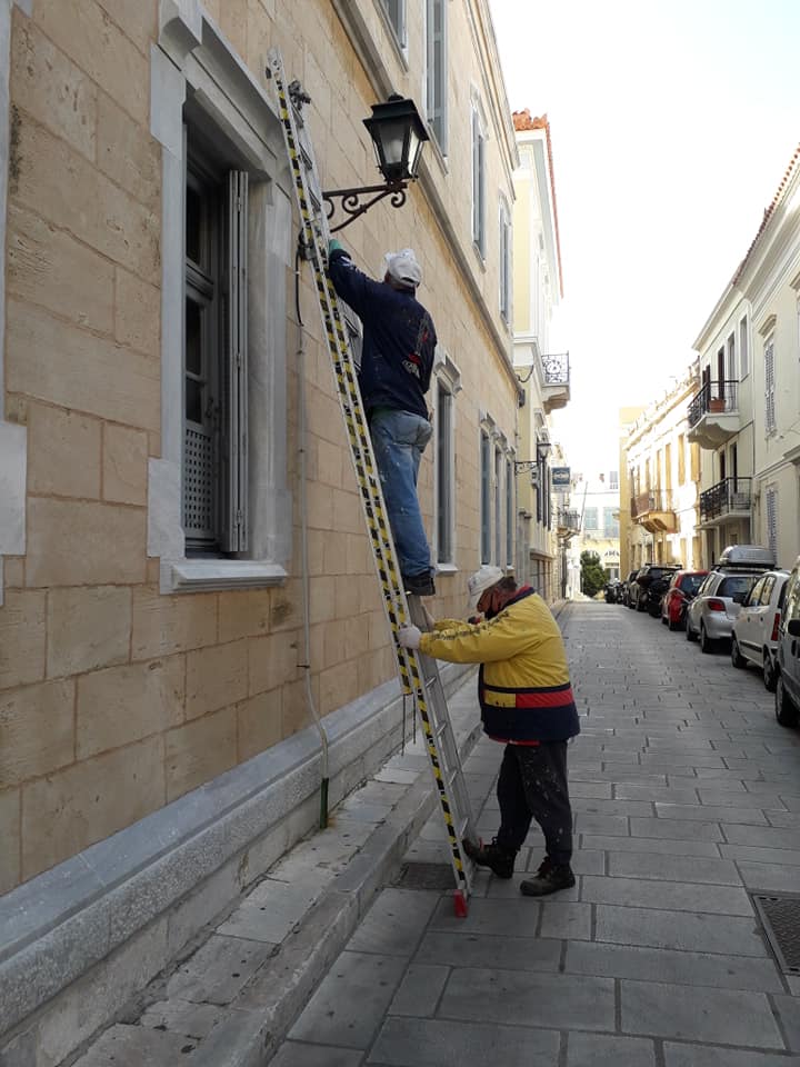 Στο πλαίσιο της γενικότερης προσπάθειας ευπρεπισμού του ιστορικού κέντρου της Ερμούπολης, το Τμήμα Μικρών Έργων της Τεχνικής Υπηρεσίας του Δήμου Σύρου – Ερμούπολης προέβη χθες στη συντήρηση φωτιστικών σωμάτων σε κεντρικά σημεία της πόλης.