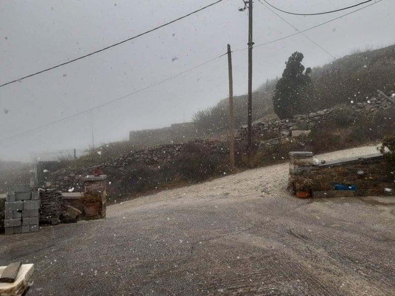 8 Φεβ. 2023 - 12:23 - Η “Μπάρμπαρα” έντυσε στα λευκά τα ορεινά Άνδρου, Τήνου και Νάξου