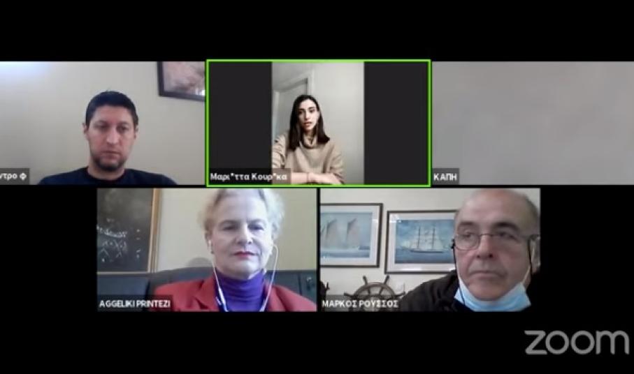 Την έναρξη των ομιλιών για τη Σύρο χαιρέτισαν χθες το μεσημέρι ο υπεύθυνος του «Κέντρου φ», Σύμβουλος Ψυχικής Υγείας, Αθανάσιος Τόλιος και ο πρόεδρος των ΚΑΠΗ Σύρου – Ερμούπολης, Μάρκος Ρούσσος. Παρούσα στη δράση που διεξάγεται μέσω της πλατφόρμας ZOOM ήταν επίσης η εντεταλμένη δημοτική σύμβουλος Κοινωνικής Υπηρεσίας του Δήμου, Αγγελική Πρίντεζη.
