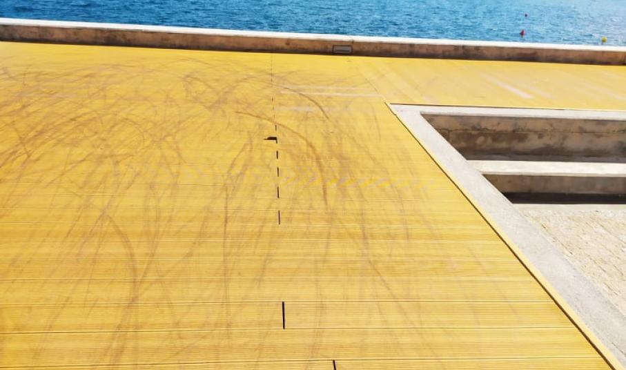 Αποκατάσταση των φθορών που έχουν προκληθεί από τα άλματα ποδηλάτων και τη διέλευση μηχανών επί του ξύλινου διαδρόμου