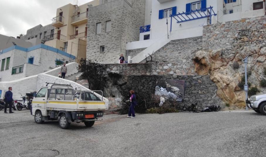 Στο σημείο έσπευσε και το Τμήμα Καθαριότητας του Δήμου Σύρου - Ερμούπολης.