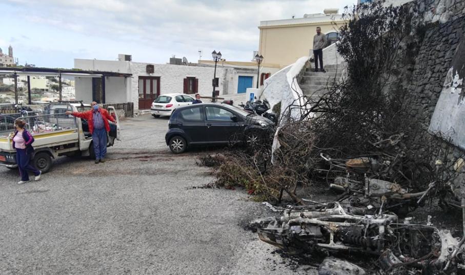 Στις φλόγες τυλίχτηκαν, νωρίς το πρωί της Κυριακής, σταθμευμένες μηχανές στην περιοχή "Καμάρα" της Άνω Σύρου μετά από φωτιά που ξέσπασε στο εν λόγω σημέρα.