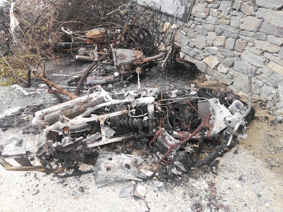Στον οικισμό κατέφθασαν δύο πυροσβεστικά οχήματα της αστυνομίας που προχώρησαν άμεσα σε κατάσβεση, ωστόσο τα δίκυκλα οχήματα έίχαν ήδη καταστραφεί ολοσχερώς. Σημειώνεται πως ήταν τέτοια η ορμή της φωτιάς, που κάηκε μέχρι και η πινακίδα σήμανσης του έργου στον πέτρινο τοίχο.