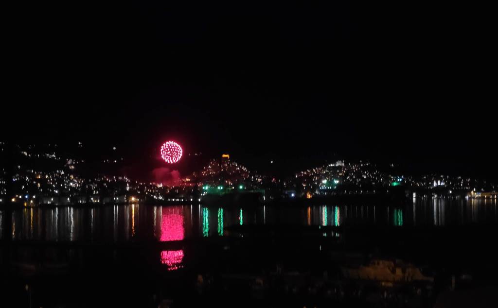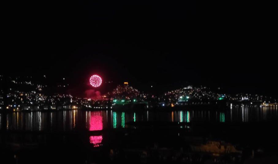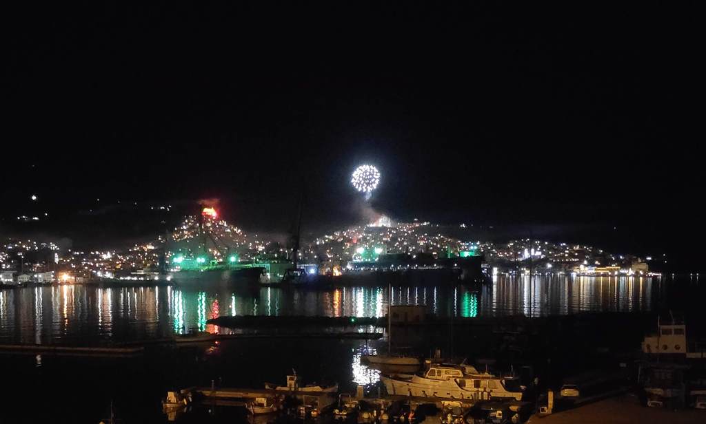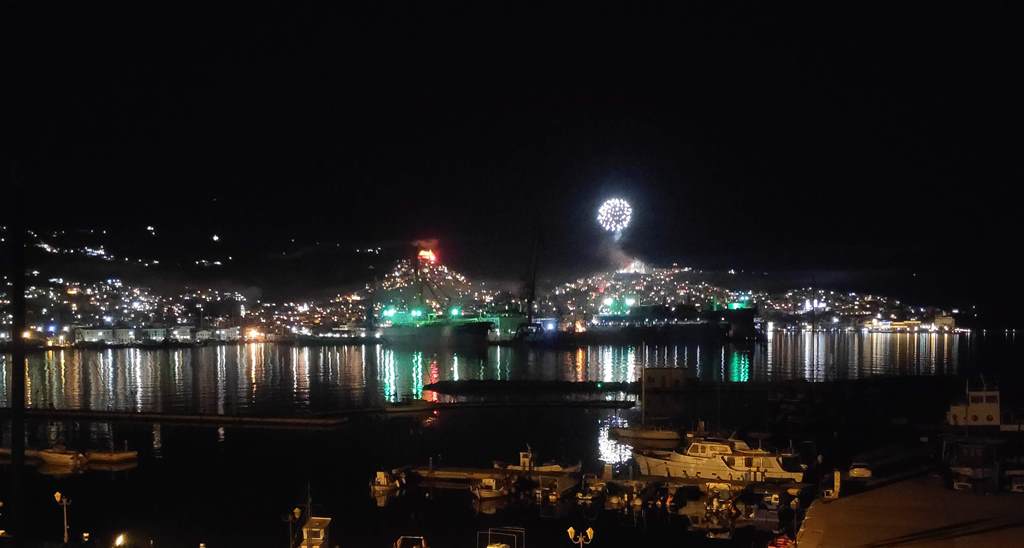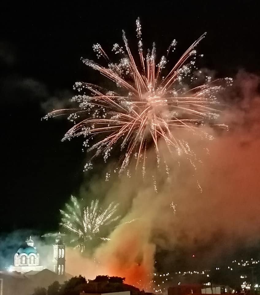 Το «Χριστός Ανέστη» συνοδεύτηκε όπως κάθε χρόνο από τη ρίψη δεκάδων κροτίδων και βεγγαλικών, φωτίζοντας τον ουρανό της πρωτεύουσας των Κυκλάδων με διάφορα χρώματα και δημιουργώντας ένα οπτικό υπερθέαμα το οποίο πολλοί απόλαυσαν από τις ταράτσες και τα μπαλκόνια τους.