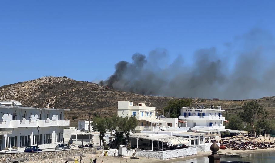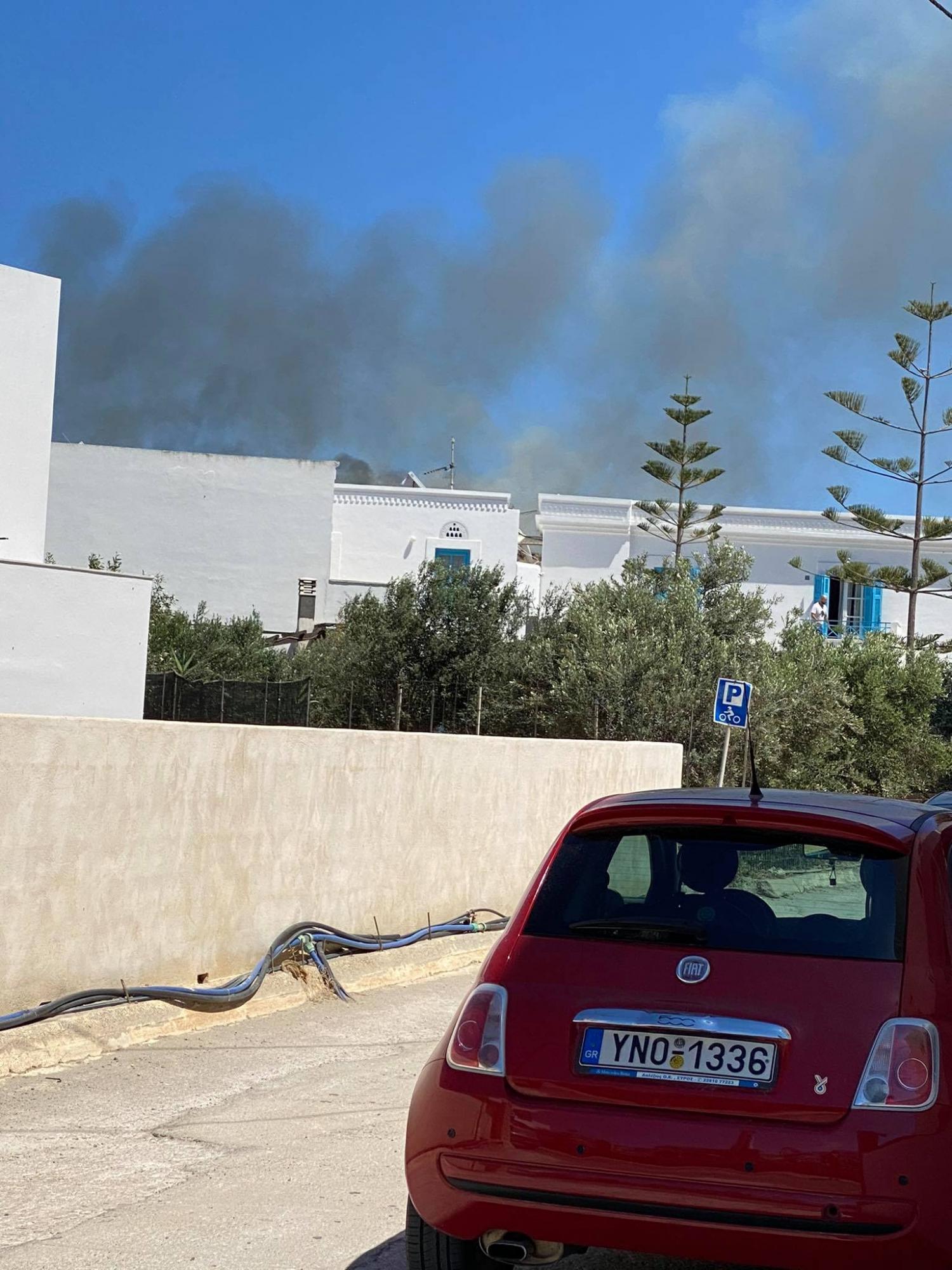 Στο σημείο έσπευσαν πέντε πυροσβεστικά οχήματα για τον έλεγχο και την άμεση κατάσβεση της φωτιάς, στην οποία συνδράμουν εθελοντές και δύο υδροφόρες του Δήμου Σύρου - Ερμούπολης.