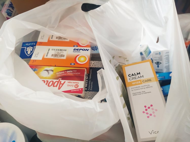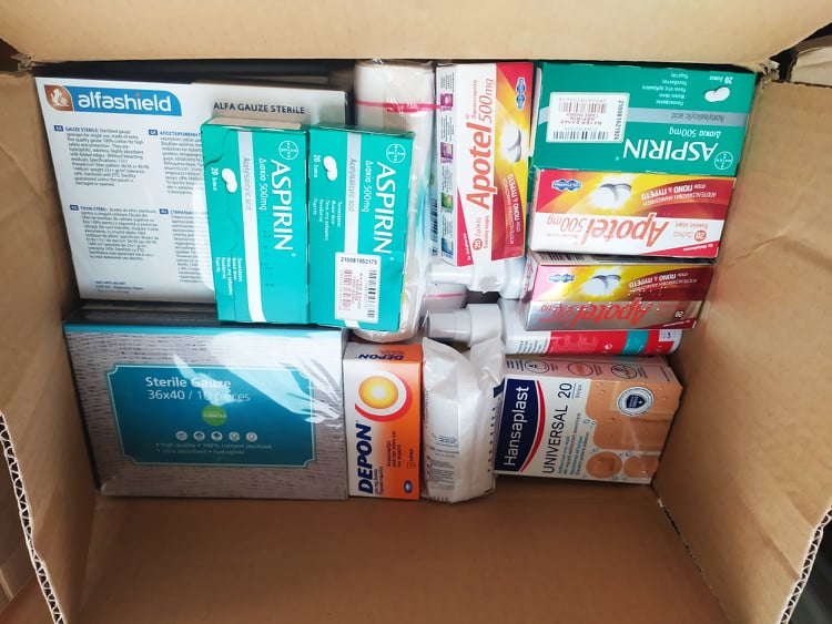 Στον κατάλογο των ειδών άμεσης ανάγκης περιλαμβάνονται: φυσικά δάκρυα, ασπιρίνη, ενυδατικές κρέμες, μάσκες, γάζες, υποσέντονα, κηραλοιφή για εγκαύματα, pulvo, πάνες μωρών και ηλικιωμένων, μωρομάντηλα, χαρτί τουαλέτας, κονσέρβες, φρυγανιές, παξιμάδια, κρουασάν, μπισκότα, γάλατα εβαπορέ, μακαρόνια, ρύζια, χυμοί, ζωοτροφές.