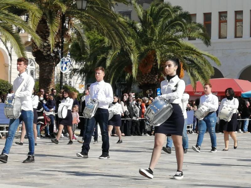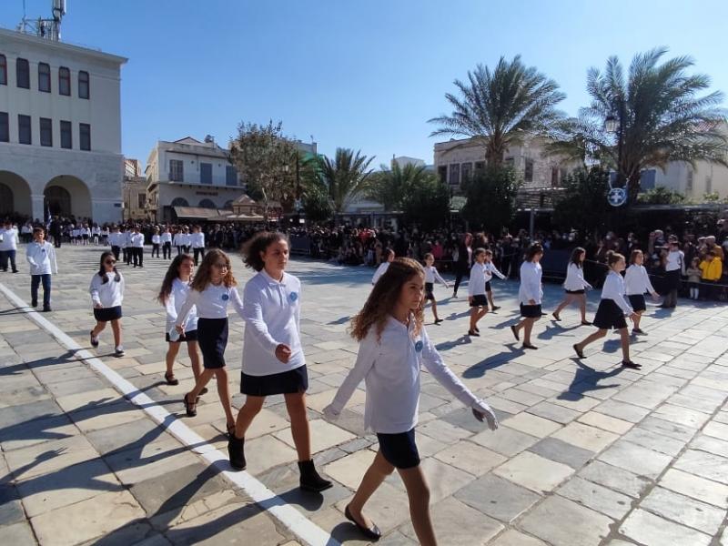 Οι επετειακές εκδηλώσεις στην πρωτεύουσα των Κυκλάδων κορυφώθηκαν και ολοκληρώθηκαν με τη μεγάλη παρέλαση στην πλατεία Μιαούλη, η οποία προκάλεσε ιδιαίτερη συγκίνηση στους παρευρισκόμενες πολίτες, καθώς μετά από ενάμιση χρόνο είχαν και πάλι την ευκαιρία να καμαρώσουν τους μαθητές και τις μαθήτριες, γιορτάζοντας όλη μαζί το ένδοξο παρελθόν και την ολοζώντανη ιστορία της πατρίδας μας.