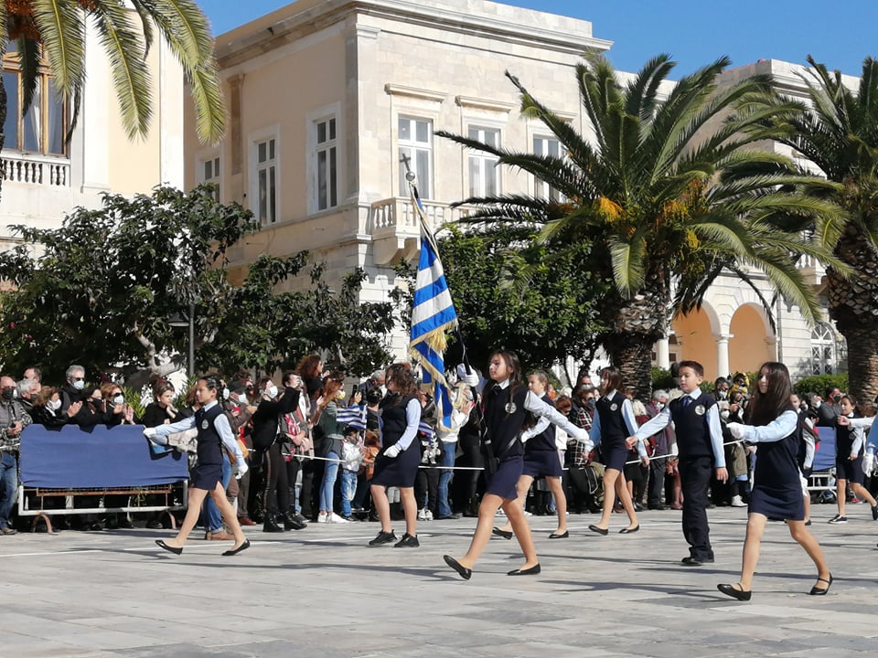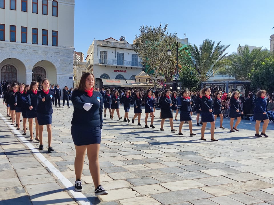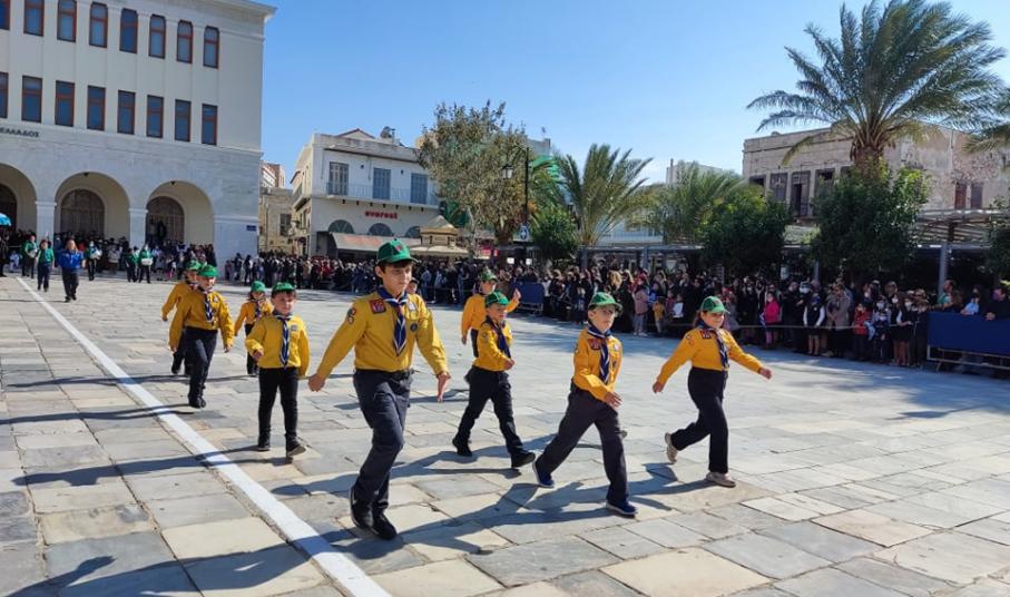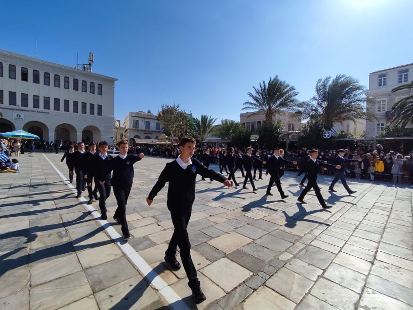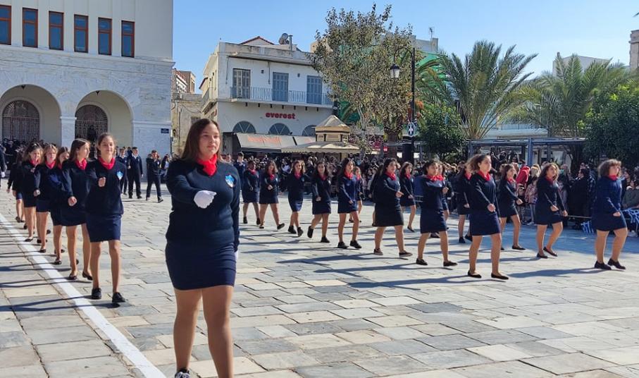 Οι επετειακές εκδηλώσεις στην πρωτεύουσα των Κυκλάδων κορυφώθηκαν και ολοκληρώθηκαν με τη μεγάλη παρέλαση στην πλατεία Μιαούλη, η οποία προκάλεσε ιδιαίτερη συγκίνηση στους παρευρισκόμενες πολίτες, καθώς μετά από ενάμιση χρόνο είχαν και πάλι την ευκαιρία να καμαρώσουν τους μαθητές και τις μαθήτριες, γιορτάζοντας όλη μαζί το ένδοξο παρελθόν και την ολοζώντανη ιστορία της πατρίδας μας.