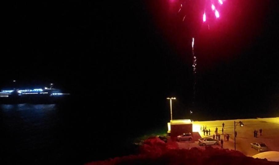 Ευχές, κεράσματα και βεγγαλικά για τις πρώτες αφίξεις στα λιμάνια των νησιών μετά την έλευση του νέου έτους