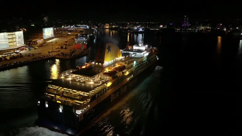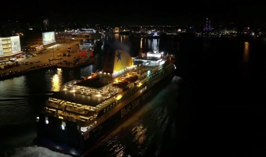 Ιδιαίτερα φαντασμαγορική ήταν η πρώτη άφιξη στο λιμάνι του Πειραιά από το Blue Star Delos, που «άνοιξε» τις αφιξοαναχωρήσεις στο κεντρικό λιμάνι της χώρας για το νέο έτος.