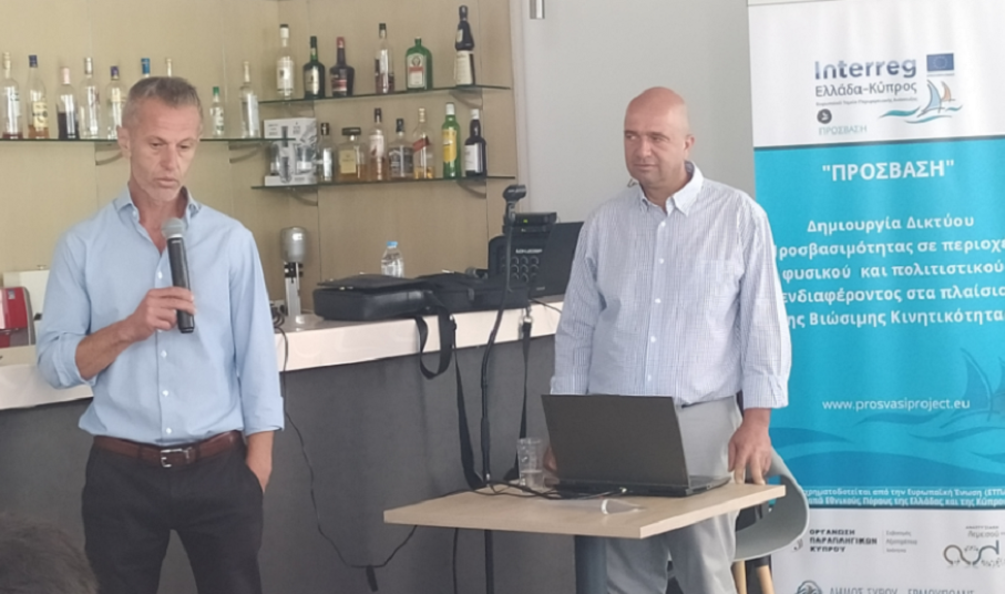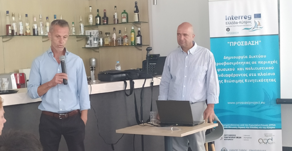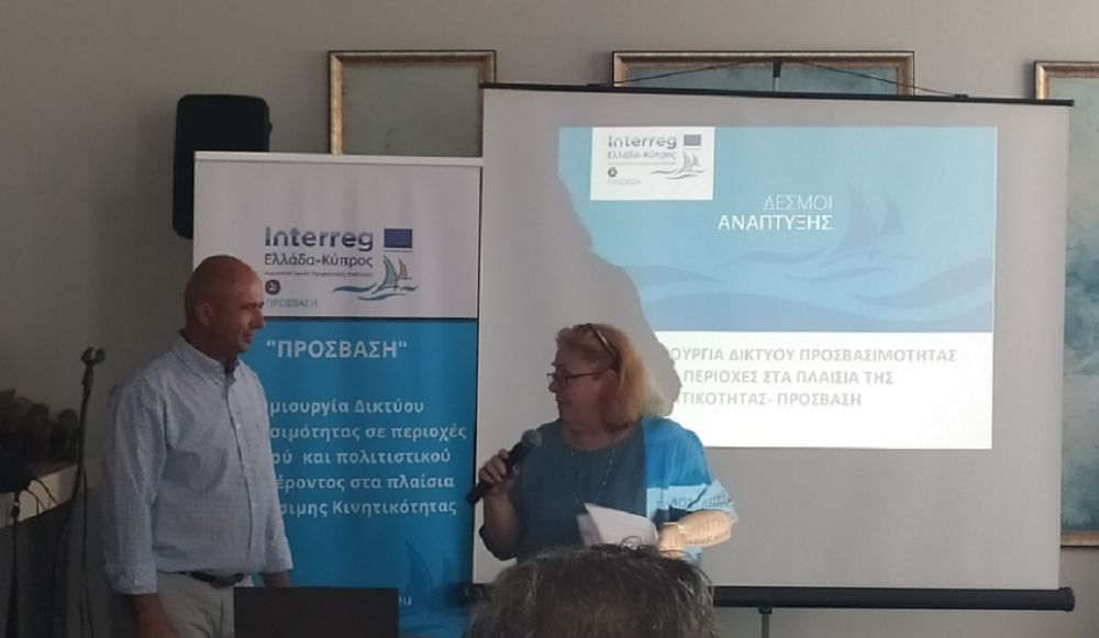 “ΠΡΟΣΒΑΣΗ – Δημιουργία δικτύου προσβασιμότητας σε περιοχές φυσικού και πολιτιστικού ενδιαφέροντος στα πλαίσια της βιώσιμης κινητικότητας” ήταν ο τίτλος της ημερίδας που έλαβε χώρα χθες, 24 Μαΐου, στο ξενοδοχείο Νησάκι με στόχο την παρουσίαση του έργου ΠΡΟΣΒΑΣΗ.