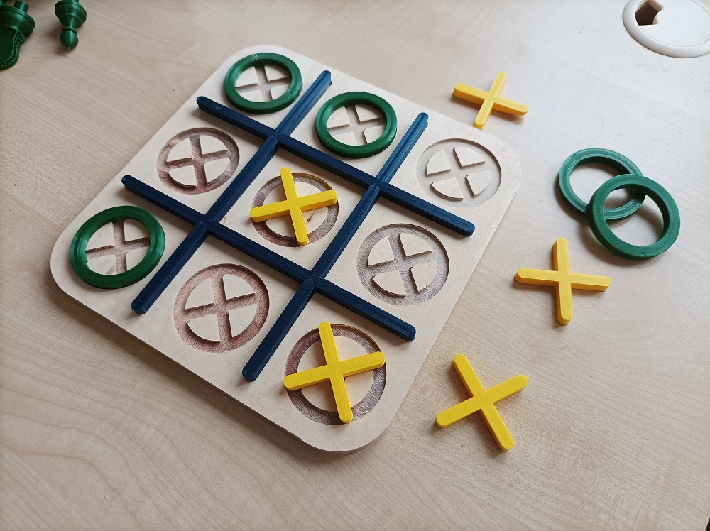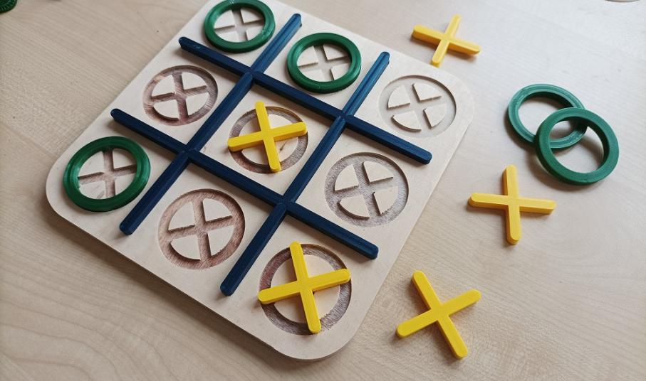 Και δεν σταματάμε εδώ! Έχουμε επίσης δημιουργήσει επιτραπέζιο παιχνίδι με την ανάγλυφη τρίλιζα, ώστε να μπορεί κάθε παιδί αλλά και κάθε ενήλικας, να παίξει και να χαρεί, με τα μάτια κλειστά! Αξίζει να το δοκιμάσετε! Θα θυμηθούμε όλοι μαζί τους μαυροπίνακες και την κιμωλία στα μαθητικά μας  χρόνια! Μια ξύλινη πολύχρωμη ανάγλυφη τρίλιζα που θα σας εντυπωσιάσει!