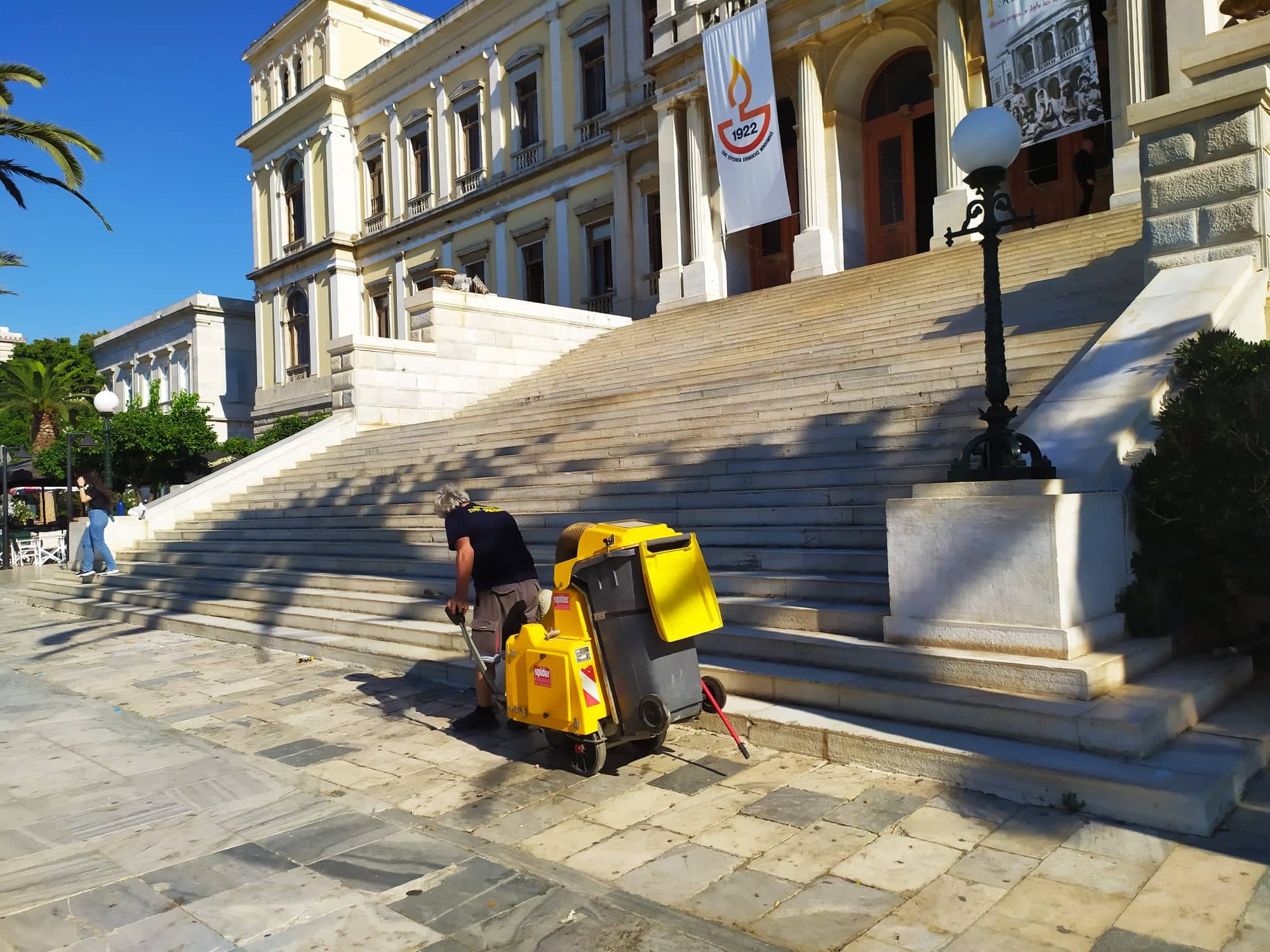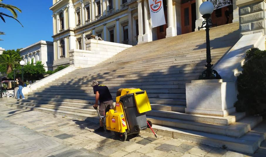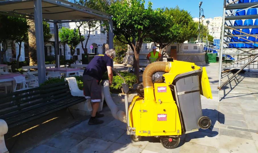Εδώ και λίγες μέρες, η Διεύθυνση Καθαριότητας και Περιβάλλοντος του Δήμου Σύρου Ερμούπολης, το επανέφερε στην υπηρεσία της και αμέσως στρώθηκαν στη δουλειά, καθαρίζοντας την πλατεία η οποία μετά τις μεγάλες αθλητικές διοργανώσεις των τελευταίων ημερών, χρειαζόταν άμεσα ένα καλό “φρεσκάρισμα” για να ξαναβρεί τη λάμψη της.