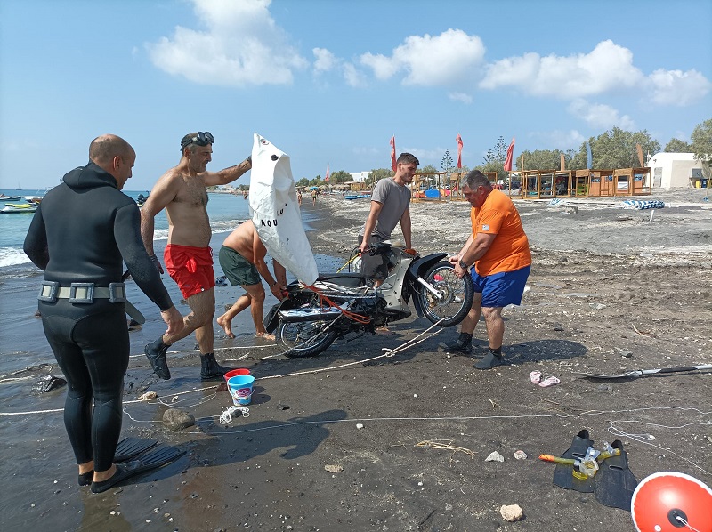 Το Εθελοντικό Διασωστικό Σώμα Θήρας ενεργοποίησε την ομάδα των δυτών του και μετά από αίτημα του Δήμου Θήρας προχώρησε σε έρευνα και ανάσυρση των αντικειμένων από τον βυθό.