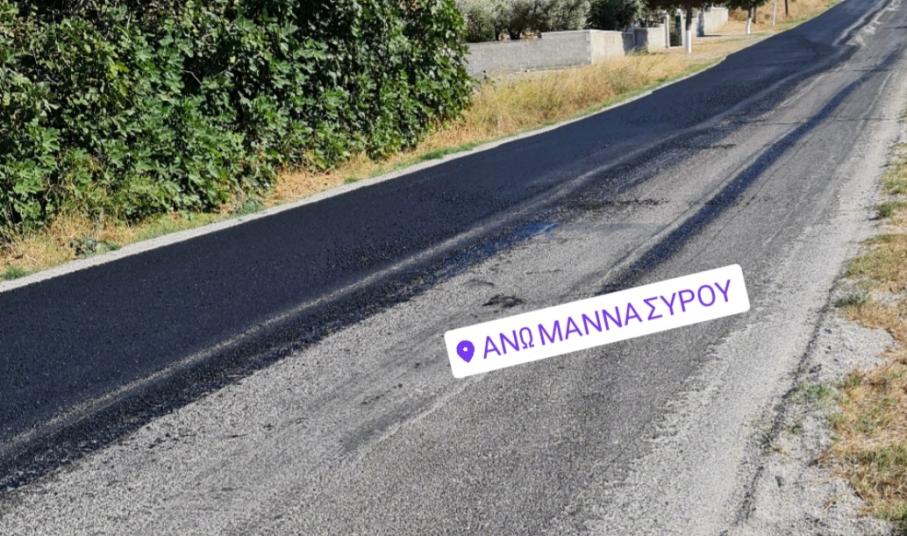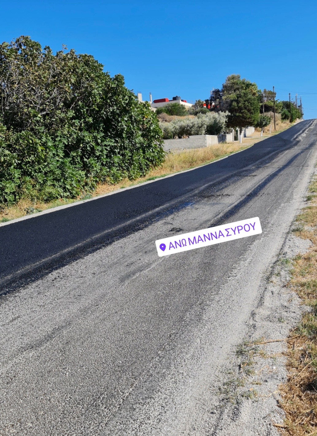 2) Στο ΑΝΩ ΜΑΝΝΑ: Πλήρης αποκατάσταση του επαρχιακού οδικού δικτύου (απομάκρυνση του παλιού ασφαλτοτάπητα και τοποθέτηση νέου με άσφαλτο κλειστού τύπου) από την είσοδο του γηπέδου ποδοσφαίρου της Ερμούπολης έως το Κοινοτικό Κατάστημα του Μάννα