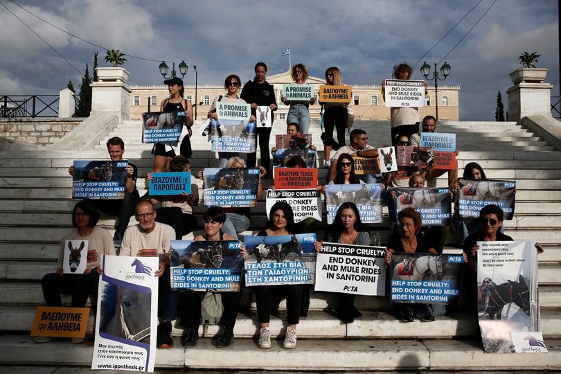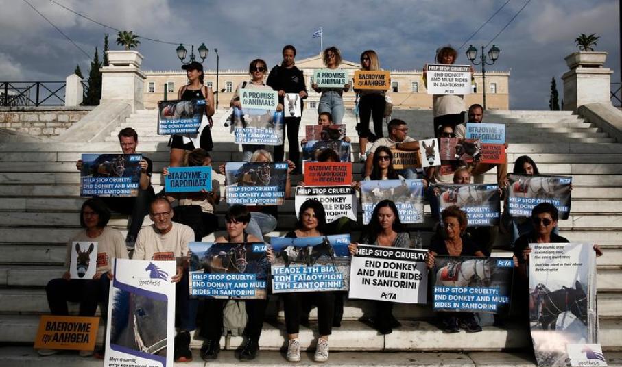 Συγκέντρωση διαμαρτυρίας πραγματοποιήθηκε το απόγευμα της Τρίτης 27 Σεπτεμβρίου, στην πλατεία Συντάγματος στην Αθήνα, μετά από κάλεσμα που απηύθυνε ο διεθνής οργανισμός PETA, σε συνεργασία με την οργάνωση «Ιππόθεσις» και την οργάνωση “A promise to animals”. Δεκάδες άνθρωποι παραβρέθηκαν κρατώντας πλακάτ και φωνάζοντας συνθήματα κατά της εκμετάλλευσης και κακοποίησης των ιπποειδών, εστιάζοντας στην τραγική κατάσταση που επικρατεί στην Σαντορίνη.
