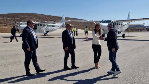 Με την πρώτη τακτική πτήση της Cycladic IFLY από Ρόδο προς Σύρο, πέταξε σήμερα το μεσημέρι ο Περιφερειάρχης Νοτίου Αιγαίου, Γιώργος Χατζημάρκος και συνεργάτες του, χαιρετίζοντας την πρωτοβουλία του ιδιοκτήτη της Cycladic, εφοπλιστή Νικόλαου Λυκιαρδόπουλου, να κάνει πράξη την αεροπορική ενδοσυγκοινωνία στο Νότιο Αιγαίο, συμβάλλοντας έτσι καθοριστικά στην εξυπηρέτηση των κατοίκων, στη βελτίωση της καθημερινότητάς τους, αλλά και στην ενίσχυση της οικονομίας και της τουριστικής ταυτότητας των νησιών.