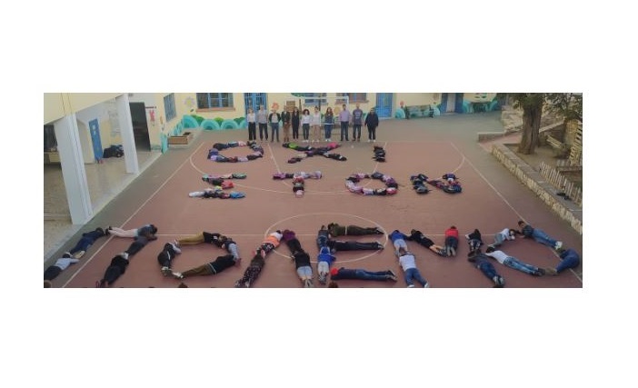 Οι μαθητές και οι μαθήτριες του 4ου Πειραματικού Δημοτικού Σχολείο σχημάτισαν με τις τσάντες και τα σώματά τους ένα μεγάλο ΟΧΙ ΣΤΟΝ ΠΟΛΕΜΟ! Ο εκπαιδευτικός Εικαστικών, κ.Παναγιώτης Καλούδης οραματίστηκε την εικόνα, οι εκπαιδευτικοί του σχολείου μας συνεργάστηκαν για την υλοποίησή του και το αποτέλεσμα, ένα ηχηρό μήνυμα μέσω της ψυχής των παιδιών! Τα απαραίτητα όχι της ζωής, για μία ζωή όπως την οραματιζόμαστε!