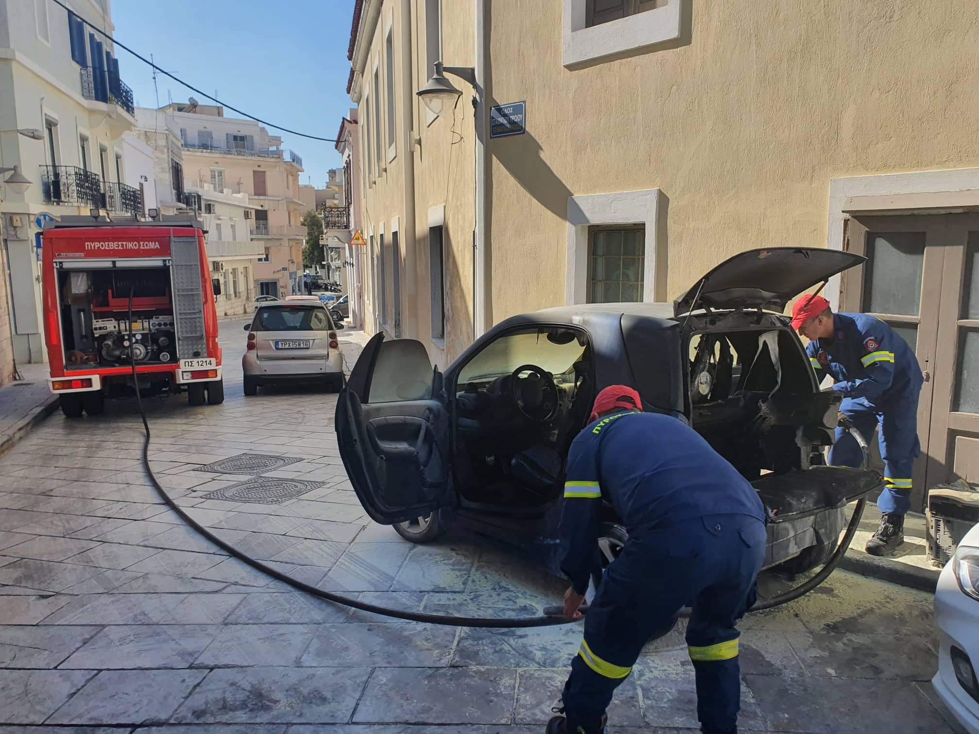 Φωτιά σε σταθμευμένο αυτοκίνητο στην Ερμούπολη