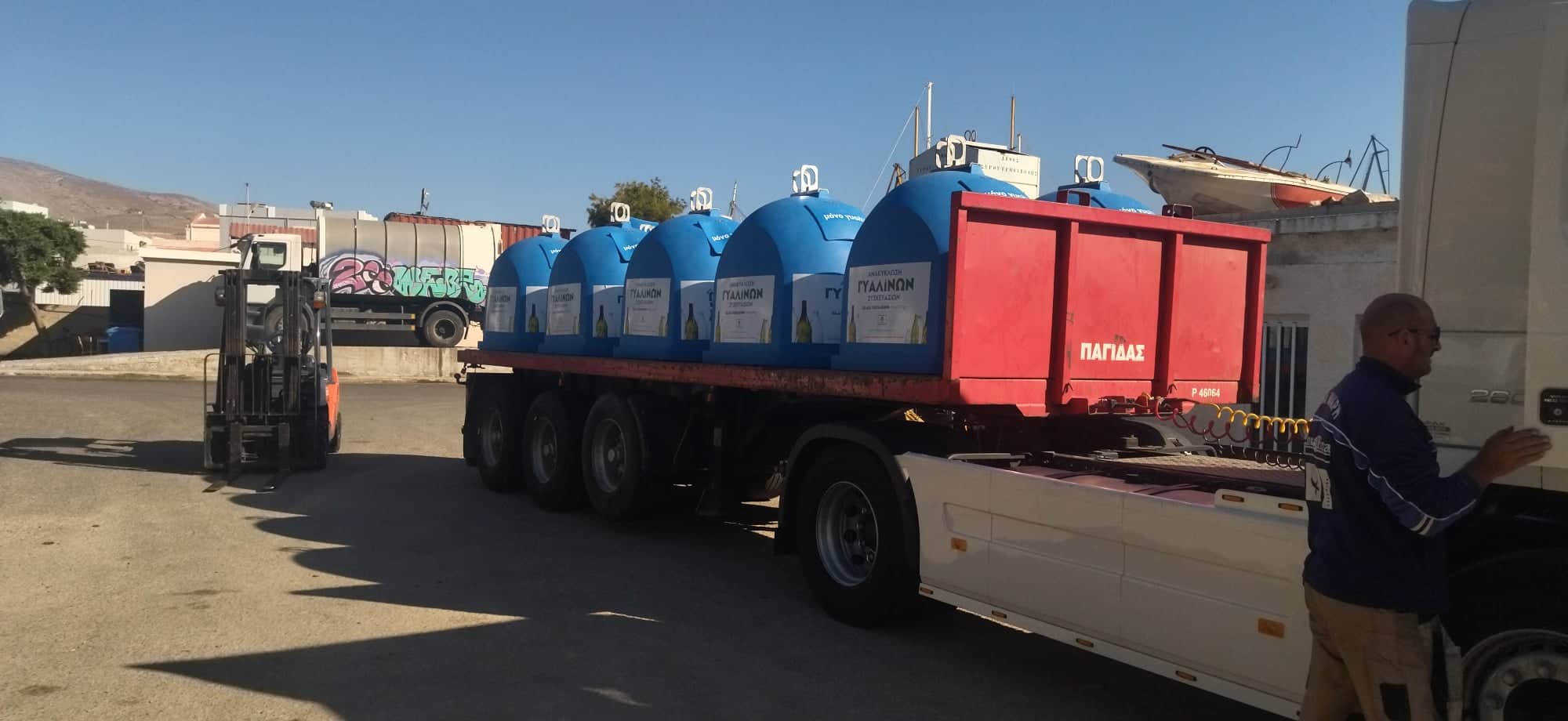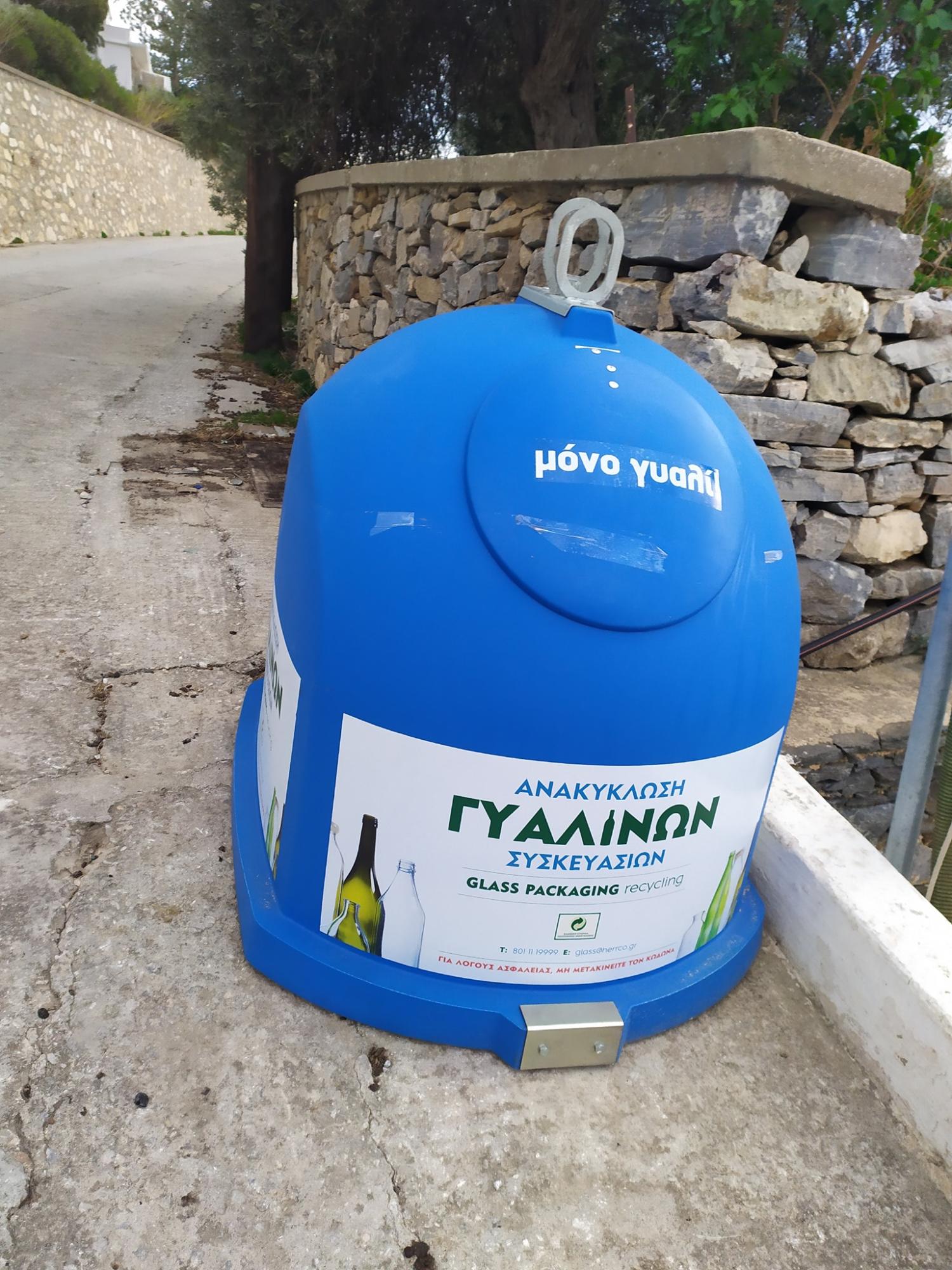 Παραλήφθηκαν σήμερα από το Τμήμα Καθαριότητας του Δήμου Σύρου Ερμούπολης, 22 κάδοι ανακύκλωσης γυαλιού, οι οποίοι επρόκειτο να αντικαταστήσουν τους παλιότερους που έχουν πλέον υποστεί σημαντικές φθορές ύστερα από κακή χρήση και συντήρηση. Τις επόμενες ημέρες, εκτός από τους χαρακτηριστικούς μπλε κώδωνες, προβλέπεται να φτάσουν στη Σύρο και οι νέοι κλασικοί κάδοι ανακύκλωσης που υποδέχονται τα υπόλοιπα ανακυκλώσιμα υλικά.