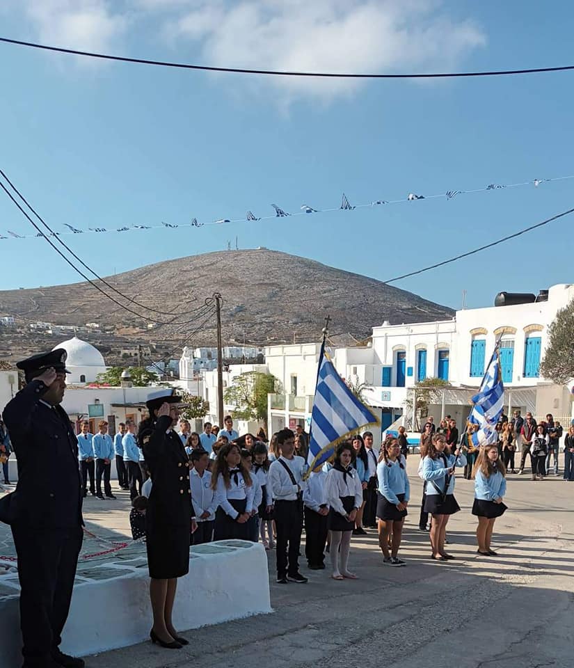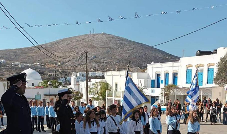 Στην Ίο για πρώτη φορά την παρέλαση τίμησαν με τη συμμετοχή τους, οι αστυνομικοί του νησιού που βημάτισαν μαζί με τους μαθητές και με αυτό τον τρόπο απότισαν φόρο τιμής στους πεσόντες. Ανάλογες οι εκδηλώσεις και σε Σέριφο, Σίκινο, Ανάφη, Αντίπαρο, Κίμωλο, Κύθνο και Σίφνο.