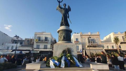 Με λαμπρότητα και τιμές, πραγματοποιήθηκε και φέτος η παρέλαση για την 28η Οκτωβρίου,στην πρωτεύουσα των Κυκλάδων, παρουσία πλήθους κόσμου που τίμησε, χωρίς τους υγειονομικούς περιορισμούς των προηγούμενων ετών, τις εκδηλώσεις για την εθνική επέτειο.